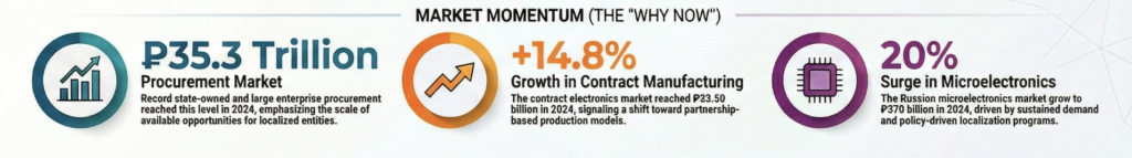 Russia’s corporate procurement market and industrial reconfiguration make localisation and compliance a practical necessity—not a “nice-to-have”: