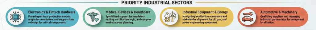 Industrial & technology companies (electronics, equipment, components, fintech hardware, industrial automation) where origin, registries, and compliance are decisive